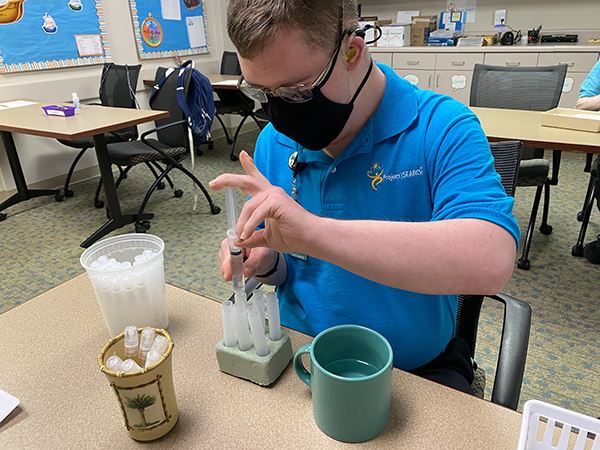 Project SEARCH Interns Fill Hand Sanitizer Bottles for Patients and Visitors