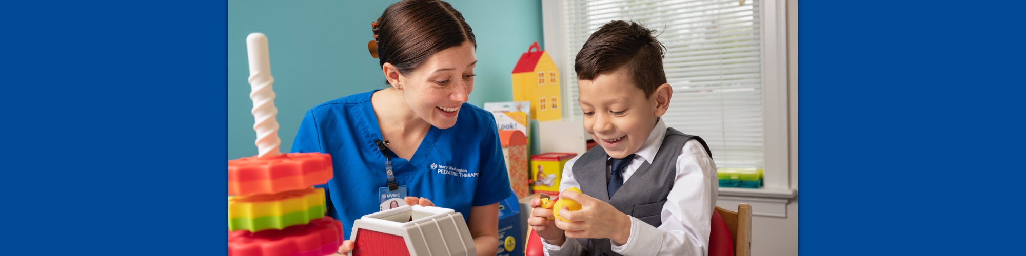 Occupational therapy (OT) services help children learn and grow in their daily living skills to promote their independence. OT can help kids improve in their play, motor, sensory, and cognitive skills as well as improve their self-esteem and sense of accomplishment by meeting their own personal milestones!